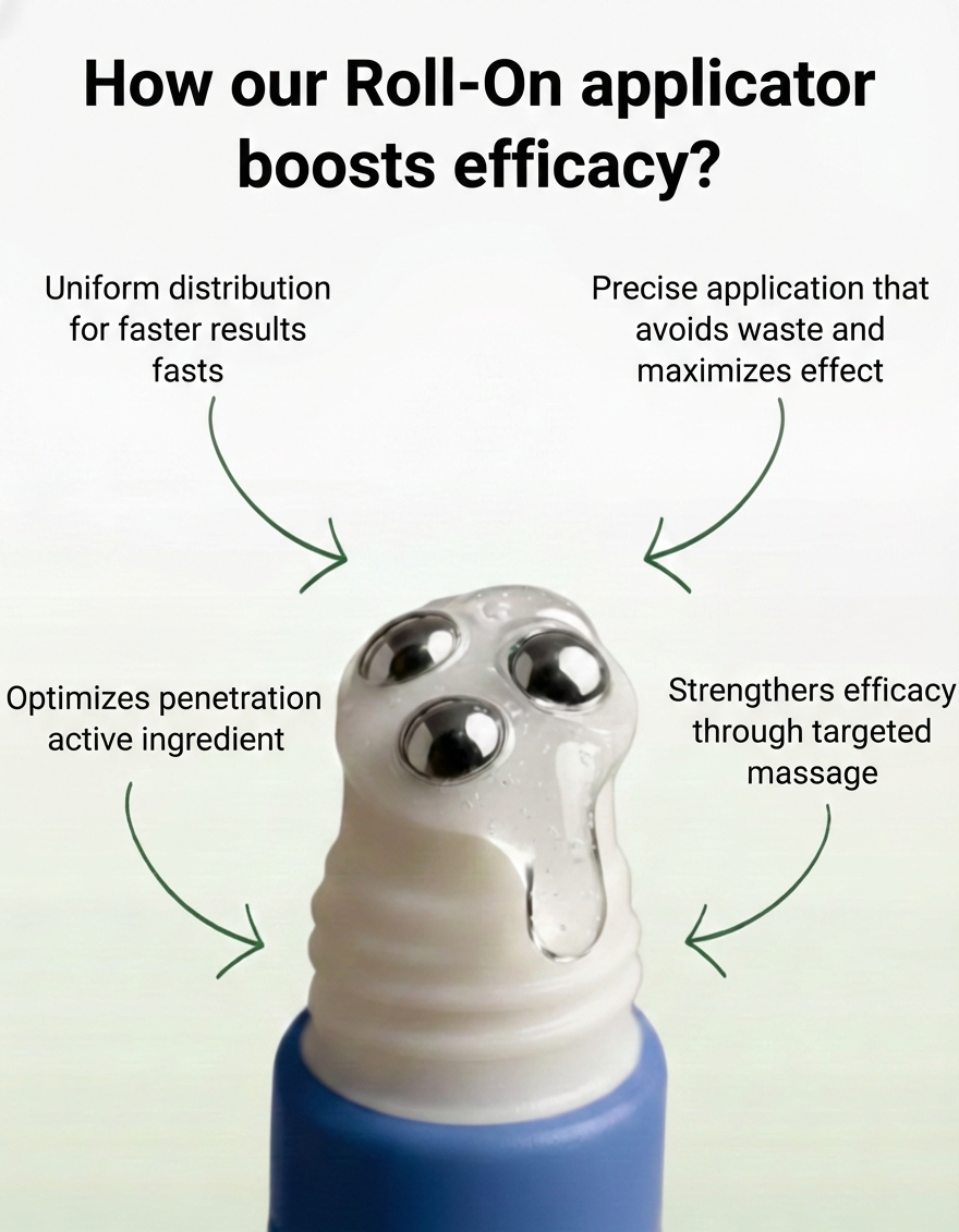 While sprays evaporate, our roll-on pushes the active ingredients 10x deeper into the dermis. This nourishes the hair at its birth stage, ensuring that new strands emerge thicker, darker, and more resilient.